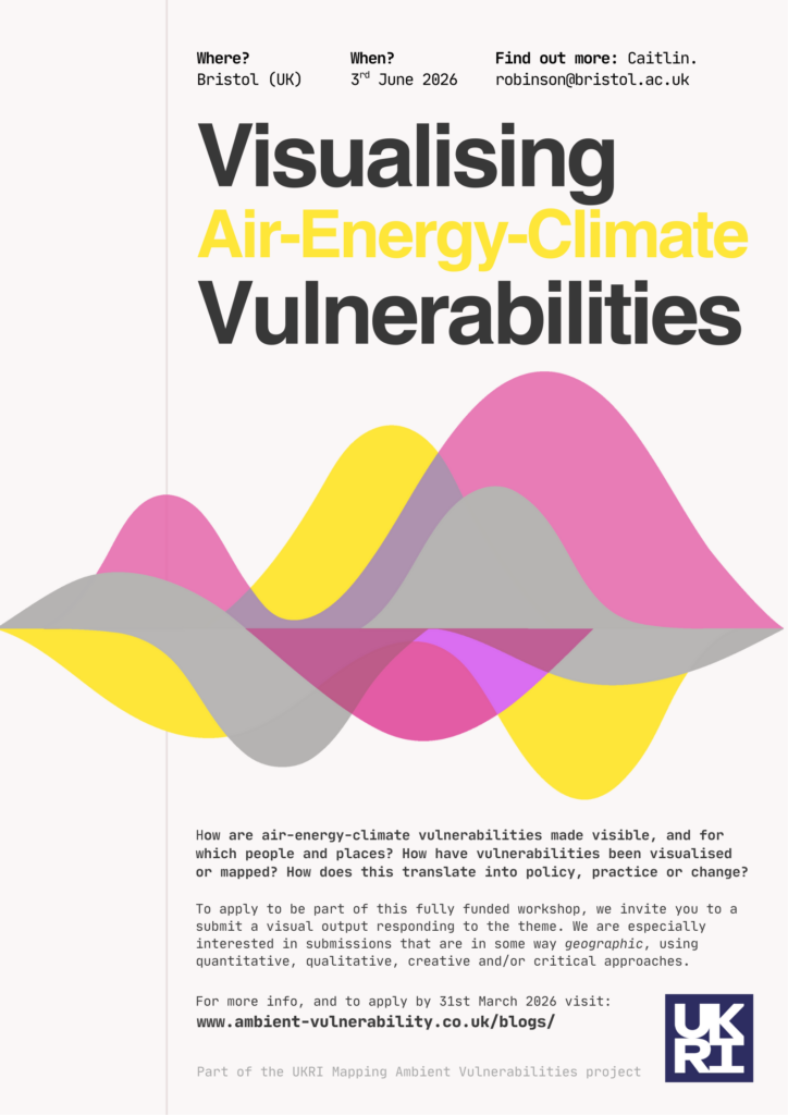 Who are the organisers? The workshop is hosted by the Mapping Ambient Vulnerabilities team based in the School of Geographical Sciences in Bristol (UK). The workshop is funded by the UK Research and Innovation (UKRI) Mapping Ambient Vulnerabilities project.